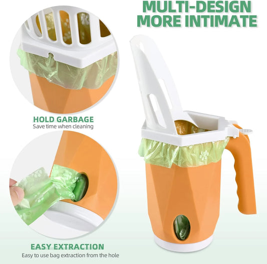 3-In-1 Cat Litter Scoop with Holdor - Large Portable Integrated Cat Litter Scooper with 200 Refill Bags Kitty Litter Scoop Shovel for 1~2 Cats or Kitten (Gray)